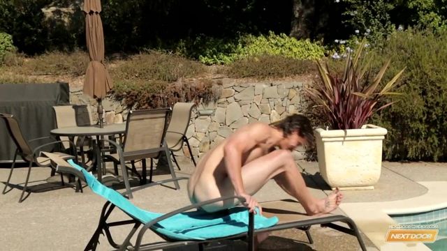 Chad Pitt is a tall, lanky Atlantic surfer with a lean build and nice long cock. Originally from the shores of North Carolina, Chad is right at home by the pool as he takes a quick dip, losing his shorts in the process. He gets out bare ass naked and decides that it's so nice outside, why not just go au naturale, so he stretches out on a lounger and begins to fondle his massive cock. Spreading his legs, he works his cock up, fondling his balls as he plays with the head, his moppy hair flowing in the breeze as he fills up with anticipation. Perching up on his knees, he continues to stroke, smacking his stomach with the head of his dick, before laying back down and closing his eyes, throwing his head back as he strokes feverishly, launching a huge load all over his chest as his giant cock pulsates from the sensation, catching the sun's light perfectly as Chad closes his eyes and dreams of waves.Enjoy!