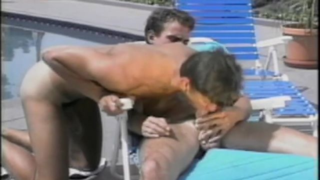 Alex Carrington and Randy Storm discuss Matt's cousin Danny while they're sunning themselves poolside. As they heat up Randy goes down on Alex... stripping his speedo and slurping his cock. After an extended session of heavy head, Alex returns the favor as Randy pumps deep. Finally Alex bends Randy over a deck chair and gives his ass a thorough pounding.