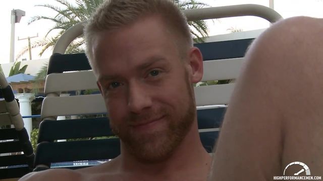 Christopher Daniels finds himself all alone, so he thinks, at the resort pool. After a swim, he rinses off in the shower and discovers that you are watching him. Being an exhibitionist at heart, Christopher knows what you want and he invites you to watch him as he pleasures himself. He moves to a lounge chair where he strips naked and sports an impressive cock engorged and pulsating with every stroke of his hand. Watching his tight abs contract as he stroked his cock is certainly a site to be seen! He then bends over for you and spreads his ass as he slips a finger in his beautiful hole. Knowing you want to see him shoot a load all over his tight abs, he then lies down on the chair and continues stroking. He lifts his legs and upon putting a finger up his ass and stroking, he cannot hold back any longer and shoots a nice load just for you. Enjoy!