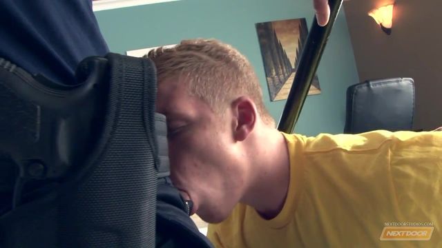 - Description: Connor Chesney is a perverted guy. He lives alone and often enjoys jerking off while watching his hot neighbors walk around their house. They've seen him before. Finally, after several complaints of visible, lewd behavior, Officer James Huntsman pays a visit to Connor's residence to find out just what the hell is going on.Connor is embarrassed and scared when he hears Officer Huntsman say he's ready to take him straight downtown for booking. Peeping is, apparently, a very serious offense, especially in Huntsman's view. There's only one way this cop is gonna let this punk off the hook. He makes it clear what he wants by putting his billy club behind Connor's head and pushing him toward his crotch. Connor reluctantly agrees to suck Officer Huntsman's cock. Taking the large, swelling thing out of the Officer's pants, Connor feels a twinge of excitement run down his spine. It tastes pretty good! And Officer Huntsman's body is unarguably sexy. Connor's just gonna have to ride this one out and deal with the consequences like a man. To finish off, Huntsman is having this neighborhood nuisance jerk both fatty dicks. Watch this no-nonsense cop lay down the law by making a serious bust.Enjoy!