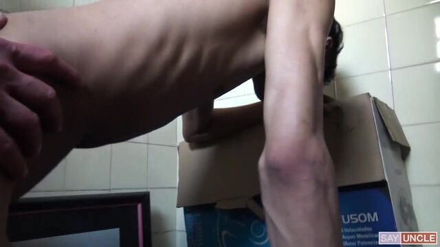 I originally thought I was looking for a strong boy to help my buddy do some construction work, but as soon as I set eyes on this kid, I know I’m going to be paying him for something else. I ask him to take off his suit for a few bucks so I can watch him work naked. The cute boy takes my money and strips off all his clothes, and I like what I see. Even though he’s never fucked a guy before, he does a good job sucking my horny friend’s uncut dick. And he moans seductively while his asshole gets penetrated on camera. I can’t wait to watch him slurp a hot load of leche.