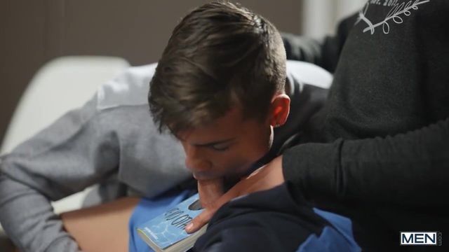 Ryan Bailey is trying to get some studying done at the college library, but his buddy Felix Fox is more interested in checking out the stern librarian, rubbing his cock through his pants, and making dirty jokes. Felix takes out his dick and puts it through a hole he made in his book, then Ryan sucks it under the table. Felix sneakily penetrates the bottom, but the pair get caught! The librarian leaves to report them, so the horny students keep fucking doggystyle over the table, then Felix sucks the bottom's cock and pounds him in missionary! Ryan rides Felix reverse, stroking himself till he cums, then takes Felix's big load on his face.