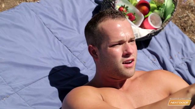 For Markie More and Luke Adams, nothing could ruin such a splendid day. Taking a romantic, leisurely stroll along a hillside trail, they settle in a beautiful clearing and set up their picnic blanket. Watching clouds idle by, Markie feeds Luke a strawberry dipped in cream, teasing Luke and dousing his nose with cream, then licking it off. The guys are having a great time, and since they're all alone, gradually their gentle play gets Markie all worked up. With the sun shining down on them, they strip to their undies as Markie works his way down Luke's glistening body, pulling his shorts off and taking his cock into his mouth. Luke rocks his legs back as Markie plunges his tongue deep into Luke's crack, tonguing him has he strokes his cock, then Markie mounts his boy-toy and rides Luke's hard cock. Luke closes his eyes and thrusts deep inside Markie, and then they switch, with Markie set behind Luke on all fours. Markie slowly guides his cock into Luke, then commences to pound his lover from behind as Luke gets close to climax. Turning him over, Markie and Luke go missionary as Markie pounds away and Luke strokes himself off, cumming all over himself as Markie pulls out and blasts him with a different kind of picnic cream. Enjoy!