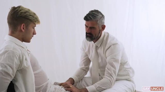Elder Madden has been making waves with every passing day. With his beautiful blonde hair, his masculine presence, and his toned physique, it’s hard for his fellow missionaries to keep their cool around him. The men of the Order have heard of his effect on his companions, and they too have taken notice. Oaks in particular craves the boy’s body. Perhaps because he reminds him of himself when he was younger. Athletic, tall, strong, and with an undeniable charisma that attracts men from miles around. When all these factors come together in one youthful package, it is a powerful force to behold. So, as Oaks interviews the boy, he must work extra hard to keep his excitement to himself. Any sign of favoritism or lust can blow the boy’s head up before he’s even taken his first steps towards the higher ranks of the Order. There is nothing worse than a servant who thinks he’s too good to serve, and breeding that kind of mentality must be avoided at all costs. Oaks knows this, so he keeps an even, calm demeanor as he talks to the boy. He asks him if he’s ever had to suppress any of his urges and is impressed with Madden’s honesty. But when he finally asks if the boy has had any urges towards him, he can’t hold his hunger back any longer. He puts his hand on the boy’s thigh, inviting him to break the barrier of touch. Then, he ties the boy’s wrists together in a chair. The boy watches helplessly as Oaks disrobes and prepares to stretch the missionary’s hole with his meaty cock. Madden has never had an experience like this before - he’s only ever fantasized about it. But now that it’s happening, he’s both excited and intimidated. It’s not until Oaks is pounding his asshole that he releases his inhibitions and allows the pleasure to overcome him. It’s his honor to be bred by the famous President Oaks.