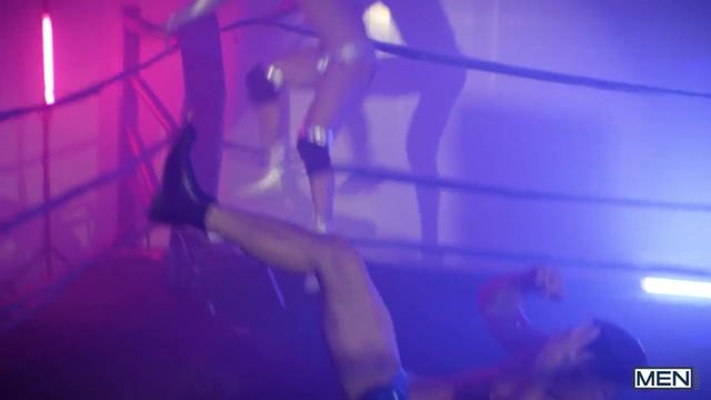 Two weeks ago, Malik Delgaty and Skyy Knox faced off in the ring, and heel Skyy cock-slapped Malik across the face and took the belt! Today at Asshole Mania, Malik is ready for his revenge. The wrestlers enter the arena to cheers and jeers, and Malik quickly shows that this time, he's going to be the one dominating. Skyy tries to regain the advantage by squeezing Malik's balls, but it has no effect! To the bearded villain's disbelief, the muscular top effortlessly pushes Skyy to his knees and fucks his face. Malik even picks Skyy up for an upside-down blowjob before bending him over the ropes and fucking him doggystyle. But Skyy won't let the upstart face take his title that easily, tossing Malik to the mat and riding his cock! Malik counters with a piledriver, then cements his victory by pounding the heel in missionary till Skyy cums, then giving him a facial!
