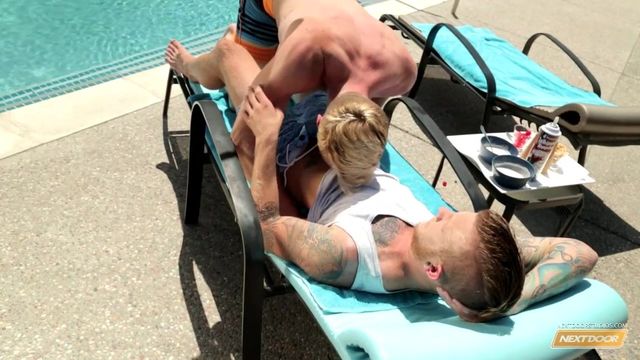 It's a beautiful summer day and Jaxon Colt has some pretty sweet plans: having already cleaned the pool, Jaxon has all the fixings for a nice ice cream sundae, but no one to share it with, so he calls his old friend Kaydin Bennett over for some sun and fun. Sitting outside, Kaydin helps himself to a nice soft serve treat, but what he really wants is something a little harder. Shooting a look over at his friend, Kaydin realizes that Jaxon is down with the program, so the guys set their bowls aside and Kaydin moves on Jaxon right there on the patio. Climbing on top of him and working his way down Jaxon's sun-kissed body, Kaydin opens Jaxon's fly and pulls his cock out, taking it into his mouth as he runs his hands along Jaxon's chest. Jaxon throws his head back in appreciation, then sits up to undress Kaydin, returning the favor and gagging on Kaydin's stiff member. Kaydin, now hot, hard and horny, bends Jaxon over the recliner and plunges his cock deep into Jaxon, as Jaxon clutches the legs of the chair while Kaydin pumps from behind.The sun beats down as Jaxon lays ass up in the air and Kaydin continues to pound from behind, then the guys switch, and Jaxon rides Kaydin, grinding his body on Kaydin's pole as he strokes himself off, spewing his dripping load all over Kaydin's chest. Jaxon dismounts and Kaydin bust his nut all over Jaxon's face. Sure it's a different kind of cream, but it makes for a sweet ending nonetheless.