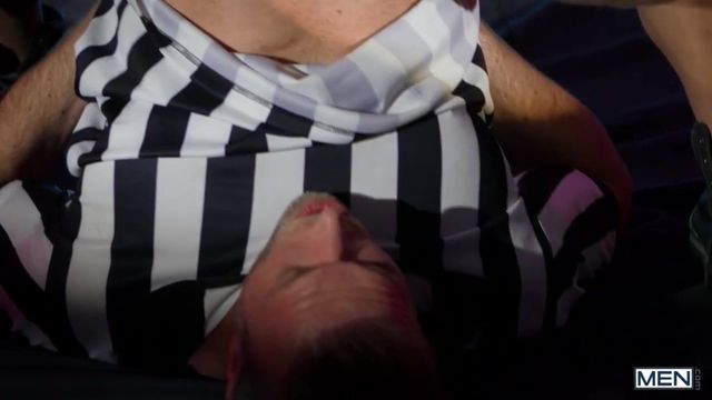 After Clark Delgaty snatched the belt during their last face off, Darenger McCarthy is sure Clark's going down during the big Asshole Mania event. These two musclebound wrestlers are so heated, they start fighting dirty, and ref Alex Mecum keeps having to separate them. United against the referee's interference, Clark and Darenger join forces to push Alex's face into Darenger's ass, then make him suck both their cocks! Clark pounds the ref as Alex sucks Darenger, then the tops switch positions. They tag-team the bottom in piledriver, then put Alex on the ropes to pound his hole in missionary till he cums. Darenger shoots on Alex's face first, then Clark feeds the bottom his load.