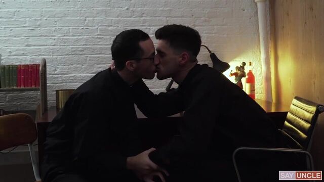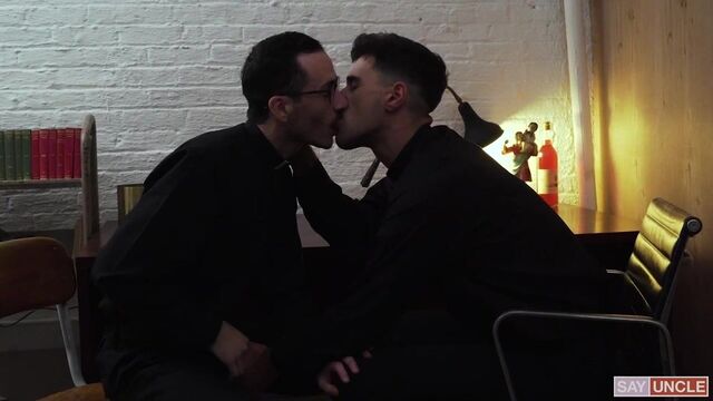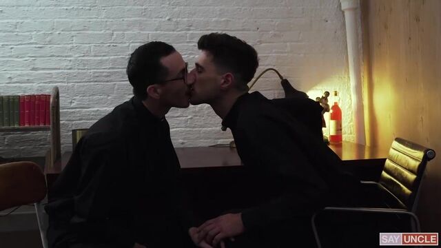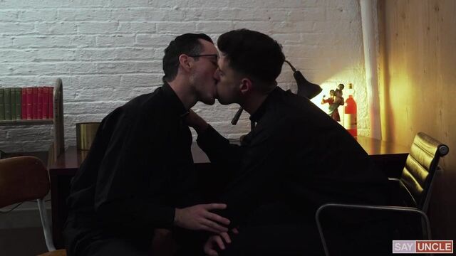 - Description: Father Gallo has been condemned for his sloppy practices with the boys, but the young priest simply won’t heed the warnings. The Priesthood has many fail-safe methods in place that keep priests from having their indiscretions with the boys of St. Patrick’s discovered. However, the more Gallo ignores these guidelines, the more he puts himself and the entire Priesthood at risk. Some of the higher-ups have suggested that the man be transferred, or seen more severely, excommunicated altogether. But Father Fiore knows how much potential Gallo has. He has seen the man work wonders with the boys, and he feels that losing his talent would be an incredible mistake. So, he fights for the man. On a mission of mercy, he enters Father Gallo’s office to convey the recent news. In Confession, one of the boys has indicated that Gallo has touched him inappropriately. Of course, the priests talk around the transgression using the coded language they are so accustomed to. But there is a tacit understanding that Gallo must be more careful. These boys must be sworn to secrecy or the entire structure could come tumbling down. Gallo is upset, even frightened by the warning, but he quickly comes to realize that Fiore is on his side. Fiore leans in to kiss the man, reassuring him of his safety. Gallo returns the compassion, touching Fiore’s body tenderly. He unzips his pants and pulls out his cock, and Fiore wraps his wet lips around the head of his dick. Fiore gives Gallo a loving blowjob, and bends him over his desk to dish out his punishment. Gallo spreads his legs, and Fiore stuffs his butt with his throbbing boner. Then, he climbs on top of Fiore’s member and rocks up and down until he receives a splash of sperm on his ass. Gallo is safe for now.