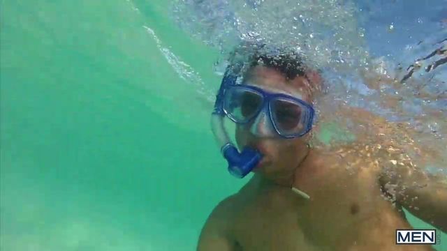 Eric Clark, and the godly Brent Everett are snorkeling when they find a private beach perfect for some hot fun. Eric can’t help but to wrap his lips around Brent's thick, perfect cock. Brent then starts to pound Eric's tight bubble ass before filling his mouth with a glorious cum shot.