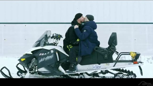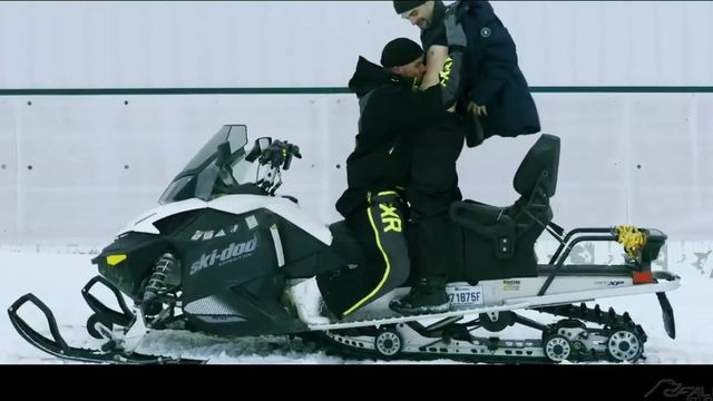 Snowmobiling studs Skyy Knox and Gabriel Clark just went behind a random building for a public quickie without realizing that horny security guard Tayler Tash was monitoring the area. After walking up on Skyy who has a mouth full of Gabriel, Tayler takes both men inside and begins to pump Skyy full of his meat. Tayler barebacks Skyy's muscular ass and only pulls out for Gabriel to suck him off to get a tease of what Skyy's hole tastes like. With both tops sitting on the snowmobile, Skyy gets a workout as he repeatedly moves back and forth between sitting on each of their hard cocks. A few more pumps into Skyy has Gabriel busting a nut right before Skyy unloads some cum for Gabriel to lick up, and Tayler finishes all over Skyy's face.