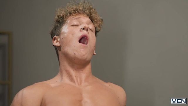 Stripped down to their skivvies, bearded hunk Johnny Donovan hungrily kisses curly-haired twinks Felix Fox and Chris White in the living room. Felix is in the middle, sucking Johnny while getting rimmed by Chris, then Johnny gets his cock worshipped by both the blonds at once. Felix moans as Johnny fingers his hole, then fucks him with a toy before Johnny climbs into his lap and rides his dick, as Chris rubs Felix's socked foot against his bulge. Felix gets spit-roasted by Johnny and Chris, who take turns enjoying his throat and his ass, before Felix gets his hole stuffed with both cocks at once! Chris is the first to orgasm, and Johnny penetrates Felix's hole with the toy as he takes the bottom's load on his face, then cums in Chris and Felix's mouths.