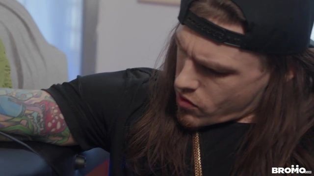 Theo Brady goes along to hold his boyfriend's hand at his tattoo appointment, but Theo would rather rub his foot against hot inker Sunny D's junk! Theo pretends to go get his bf something for the pain, but sneaks back to suck Sunny's cock under the table, then spreads his ass to get fucked! The guys don't stop when they get caught and Theo doesn't care about getting dumped when he can get his hole drilled by the sexy top, then get covered up with a hot load on his chest.