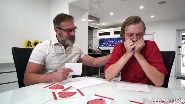 This Valentine’s Day, blonde cutie Skylar Hill is embarrassed to let his old man see the love notes he’s writing. When his stepdad finally gets his hands on the card, he gets the feeling that the boy wants him to be his secret Valentine. The old man’s flattered, so he makes lustful eye-contact with the boy and sticks his tongue in the horny boy’s mouth. He rubs the little guy’s sensitive erection and then feeds him his girthy shaft. Then, the boy sits on his meaty rod, bouncing up and down until he strokes himself to a creamy explosion. Happy Valentine’s Day!