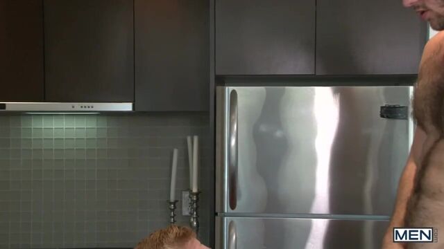 Bennett Anthony has been secretly admiring Jimmy Fanz, probably because of his playful nature and cute butt. When Jimmy finds a framed photograph of himself in Bennett’s kitchen, he is flattered and admits to Bennett he has a crush on him too. Before you know it, Jimmy is in doggy position on the kitchen counter-top and Bennett is lathering his asshole with his warm tongue. Love is most definitely in the air as Jimmy takes Bennett’s thick cock hard and deep in his hairy hole.