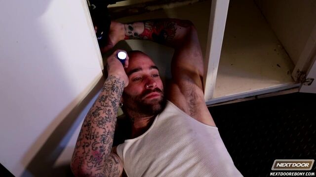 A domestic man's work is never finished. At least it seems that way today for poor Damian Brooks. Damian's disposal is acting up again and this time he's called a piping service. Sam Swift shows up, ready to get his hands dirty fixing the problem. Little does he know that Damian has another problem...he wants his ass fucked!When Sam notices Damian has disrobed, he lets Damian know that he has his own pipe that needs some work. Damian is quick to assist. Sam can't believe what a good cocksucker Damian is. And Damian can't believe the awesome size and power of Sam's enormous boner! After some deep sucking, Damian is ready for this strong, handsome plumber to slide that nice dick into his ass. So right there on the counter, Sam bends sweet Damian over and pounds his cock loving hole. Watch as they move to the floor for more serious banging. Whose pipe will burst first? Watch and see both boys blow off some serious steam!Enjoy!