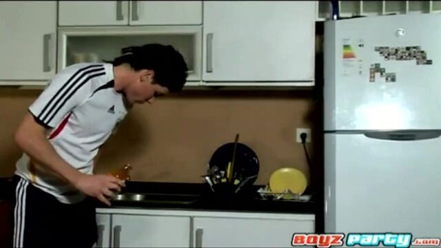 Hottie in a German kit jacking off in the kitchen - Boyz Party