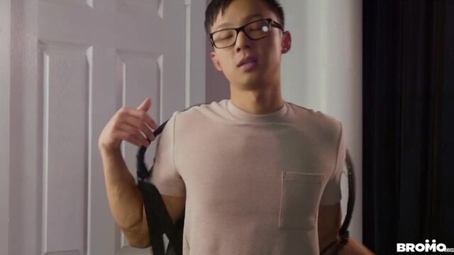 Handsome security hunk Trent King keeps a close eye on bespectacled twink Dane Jaxon as he browses at the menswear store, and when Dane sets off the alarm when he leaves, Trent gives him a thorough pat-down! Although he doesn't find anything, he takes him to the back, where Dane strips. Trent finds what set off the metal detector--a plug stretching Dane's tight hole--then replaces it with his cock, fucking the bottom till Dane cums, then giving him a facial.