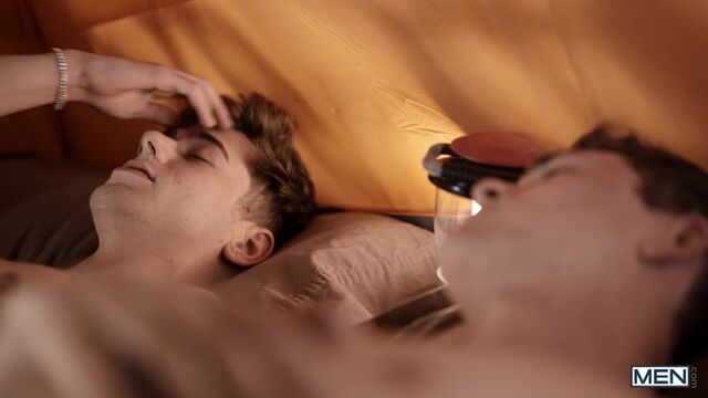 It gets chilly camping in the mountains at night, so twinks Joey Mills and Troye Dean conserve body heat by sharing a blanket. But Joey isn't ready to close his eyes just yet, rubbing his ass against the top's bulge until Troye rips open his briefs and fucks him spoon. The guys 69 and Troye drills the bottom doggystyle, then pounds Joey on his back. The guys steam up the tent as Joey rides the top reverse until he cums, and Troye pulls out and shoots his load.