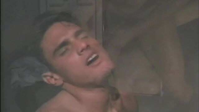 Leo Masters, Jay Corey, and Bill Wadkins meet up in an alleyway for a sizzling threeway. They suck and rim, then Jay and Bill sandwich a double-ended dildo between them, working it deep into their asses as Leo assists. Finally the studs spill forth in sticky satisfied streams.