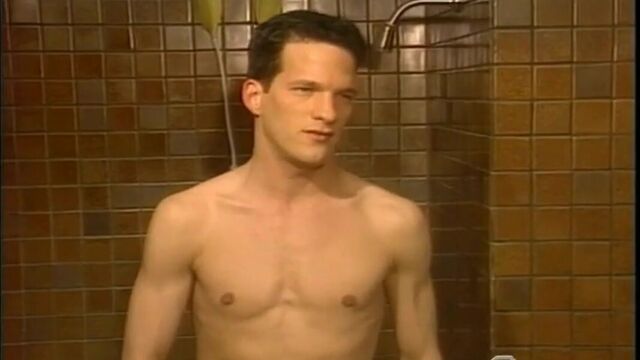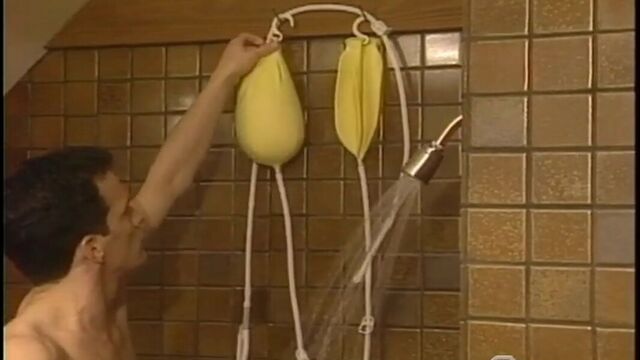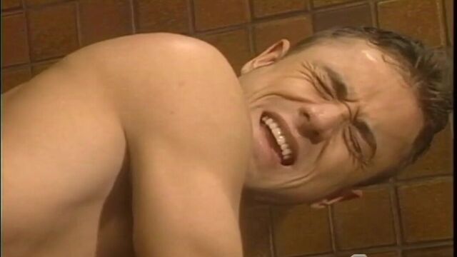 Rick Drake heads to the shower. He is soon joined by two of the biggest cocks the industry has seen: Carl Erik and Kevin Dean, who fill both of his holes after an enema cleans him up.