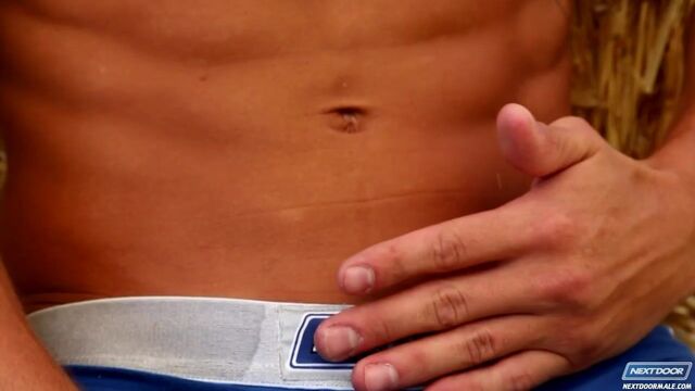 Hugh Jazz is a country boy with a reckless streak running through him, but we've managed to keep him out of trouble for at least one afternoon. A good ol' boy originally from West Virginia, this rabble-rouser likes to go fast and get dirty, and he's not stopping until the job is done. We catch up to him at the end of his day moving some hay as he relaxes and kicks back with a cool one, draining it quickly before turning his attention to a different sort of release. Oblivious to onlookers, he unzips his pants and lets his cock peek out from the side of his underwear, the head swelling up as the shaft hardens. He takes it out and stands it up, wagging it around before standing up, pushing it through his legs as he bends over and begins to stroke, before reclining back down on the hay and spreading his legs to get that nut southern style. Running his hands up and down his chest and his rippled abs, his mouth falls open as he gets closer and closer, breathing heavy and beading moisture as he sprays his milky load all over himself in the afternoon sun, the sweat on his head glimmering in the afternoon light.Enjoy!