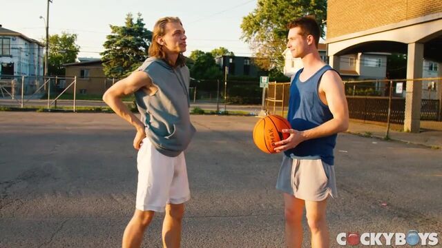 - Description: A pick-up game of one-on-one basketball literally becomes a pick-up with Leo Louis & Benjamin Blue. When Benjamin passes by a neighborhood court and stops to watch Leo shooting hoops, it's really Leo's big dick bouncing in his shorts that motivates Benjamin to join him playing ball. Thinly veiled sexual banter and Benjamin's cute butt spur Leo to take him to semi-secluded garden to act on their mutual lust by kissing & groping each other.When their cocks coming out, Benjamin goes down on Leo who then starts to eat out Benjamin's hole and they only stop when Benjamin hears someone coming. So, he takes Leo home for total freedom. After more passionate making out, Benjamin sucks Leo again and Leo reciprocates with oral pleasure on his cock, his sensitive smooth body and back to his hole.After deep-tonguing his hole Leo turns Benjamin on his side to fuck him. Leo patiently gives Benjamin time to take his cock but when his hole is sufficiently expanded, Leo fucks him deeper. Soon, Leo puts Benjamin on all fours and begins to fuck him harder. And after Leo bears down on him, Benjamin thrusts his hole back and fucks himself on the big cock. Finally, Leo strips Benjamin naked to fuck him from behind.Leo barely has to do much because his cock hits its mark effortlessly and Benjamin has a hands-free mini-orgasm in which cum oozes out. Leo keeps plowing Benjamin who has a full orgasm and begins shooting a massive load as Leo pulls out to shoot his big load at the same time. As Leo kisses him, Benjamin is still milking his cock and jokingly comments this was a "blast". That's TWO blasts, according to Leo!Enjoy,Jake Jaxson