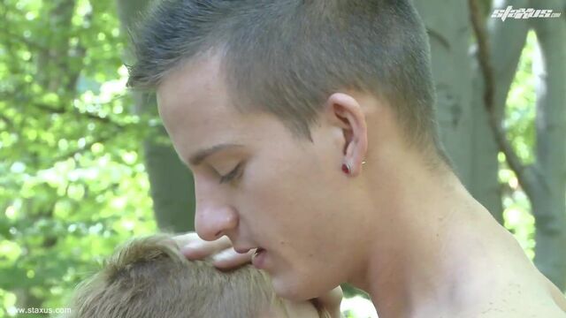 Bonding sessions come in a variety of forms, but is there anything that brings two mates closer than an impromptu trip to the countryside and the opportunity to hone your skills at putting up a tent together? Unfortunately for David Hanson and Gold Star, this is one particular erection that seems destined to fail right from the off! Still, why waste time trying to fathom out how to master the etiquette of camping when you can concentrate on more important matters? Things like sucking your pal’s hard cock whilst supping a can of cheap lager or giving his ass the kind of pounding that it surely always deserved!Certainly that’s the way events transpire here, as the two horny, over-sexed pups quickly abandon their love of canvas in favour of an almost unsightly lust for dick! Still, with the kind of equipment that blond beauty, Gold Star, has stuffed in his pants is it really any wonder that young Hanson is literally salivating at the prospect of getting a healthy mouthful of meat?Having savoured every inch of his buddy’s love-pole, however, Hanson is clearly in the market to sample the boy’s ass; and almost before Gold Star has chance to take breath he finds himself parting his butt-cheeks in order to accommodate first Hanson’s almost over-eager tongue and finally the lad’s badly swollen knob! It all marks the start of a truly superb open-air coupling, which culminates in Hanson white-washing Gold Star’s face and the young blond lad knocking out a terrific wad of his own in response!