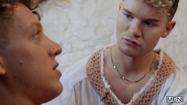 When Norseman Sir Peter sees servant Dean Young gathering water for god Loki (Felix Fox), he sneakily follows to watch. Loki reveals a shocking secret as Dean bathes him: Dracock the Dragon is coming, and with him, destruction. Only Thor can save them, and although Dean has heard tell of where he might be found, Loki makes a bargain: he will lie with him if Dean will never tell anyone. Peter watches, stroking himself, as the blond twink sucks the god's cock and is fucked doggystyle over the bath. The servant rides Loki's cock, then Sir Peter spills his seed in his hand as Loki fucks Dean and cums on his face. Dean may have promised to be silent about Thor, but the Norse warrior did not...