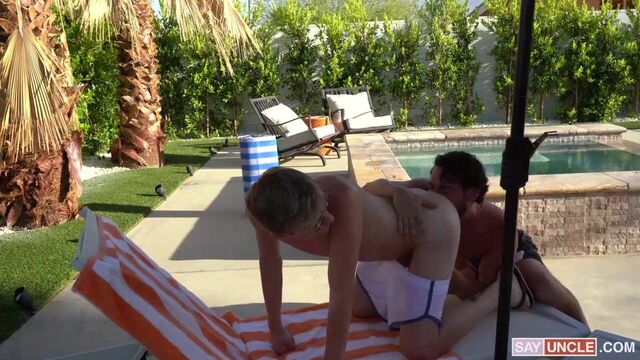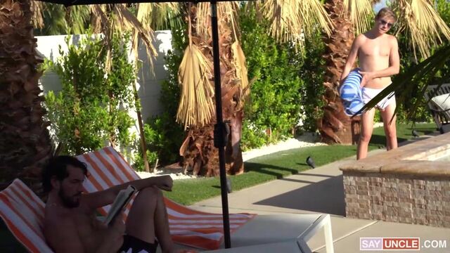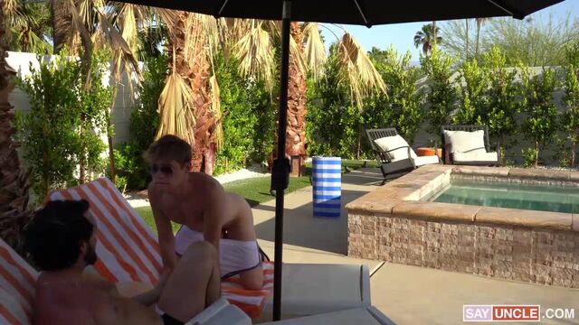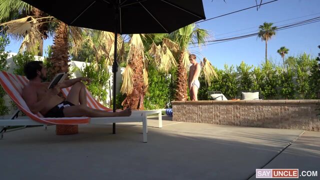 Derek has been asked by his boss to bring his stepson Jack to the pool gathering they’re having. Derek begs Jack to behave because this job is very important to him, but Jack has other plans. Once they’re at the pool, Jack starts pulling his pants down and claiming he’s feeling too horny, so he begs Derek to help him cum before his boss comes back outside! Derek is unsure but decides to go for it and ravish his stepson’s asshole!