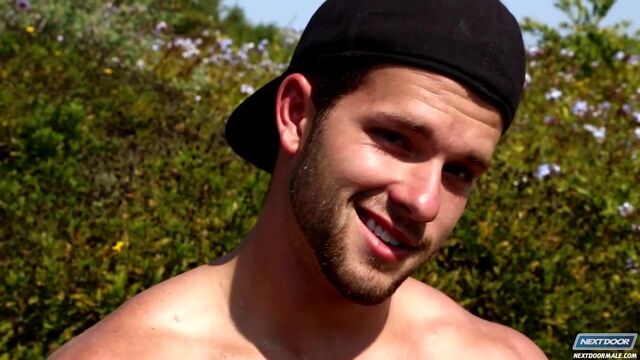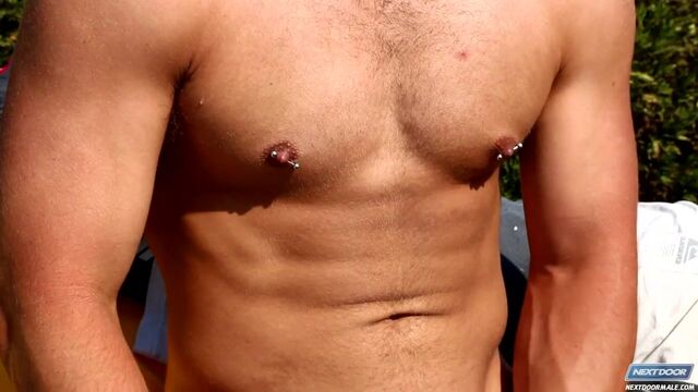 Muscular dude Luke Adams jerking his pierced dick outdoors - Nextdoor Male