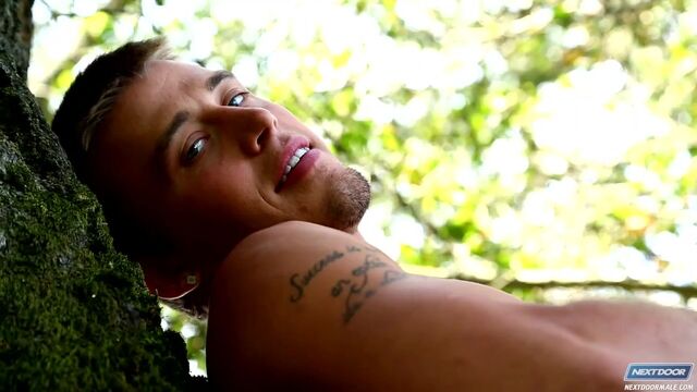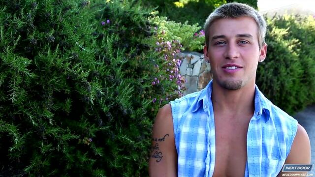 Blondie with a body, Austin Storm, jerks off outdoors - Nextdoor Male