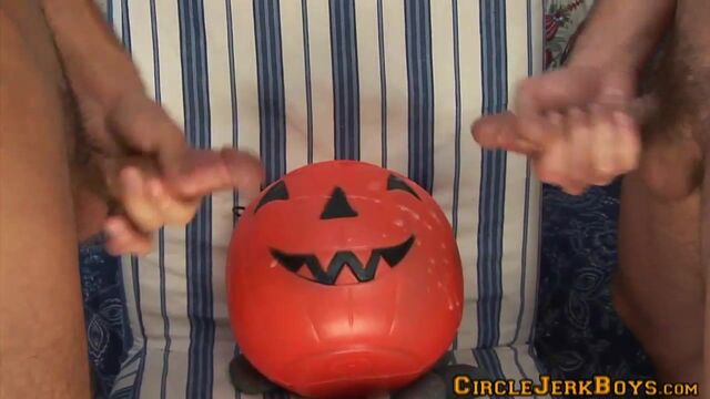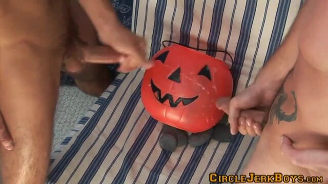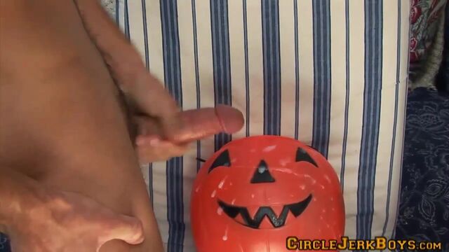 It's Halloween weekend and keeping in the spirit we decided to bring our members a treat by the name of Richie Sabatini. It's been a while since we've seen this 23 year old Miami boy; but we're always happy to have him. Tyler Shields is here as well and making his debut. This 22 year old Indiana native may be enjoying himself here in Florida; but things are about to get even better. We asked these two after all their bills were paid what was the last thing they treated themselves to. Tyler recently bought himself a crotch rocket. For Richie it was clothes from Armani Exchange. We then asked them if money was no object what they would want to acquire. Richie would want a jet ski. For Tyler he would just spend the money on more parts for his new bike. We then decided to wrap things up by asking if they could be in the middle of a hot fantasy three-way who would they pick as their partners. Richie has a partner so he would be behind him and in front he isn't sure at the moment. For Tyler, he also has a partner that would be bringing up the caboose. As for who would be in front of him, he wouldn't mind Johnny Hazzard to slide into. Well, get in line, who wouldn't?! Well, enough talk- let's get these two naked...Two demons walk into a bar with a bottle of lube in one hand and a boner in the other... well, not exactly; but somehow they make it home together. Richie and Tyler are back from a night of trick or treating and start to explore each other still wearing their masks. They are short lived as they join Richie's pants on the floor. Tyler hauls out Richie's thick cock as he gets to work sucking his dick. Richie moans as he gets his cock worshiped. Tyler takes his time as he savors Richie's rock hard meat. Tyler then gets up to make out with Richie for a bit before Richie gets on his knees to return the favor. Tyler gasps as Richie wraps his lips around his aching cock. Richie slowly services Tyler's dick as he runs his hot tongue along the length of Tyler's shaft down over his smooth balls. An amazing shot from below shows off Richie's oral skills as Tyler orders him to suck his dick. Tyler and Richie go back to making out as their hard cocks rub together. They haven't had enough of each other so they reconvene on the floor in a steamy 69 where each can get as much cock as they want before moving on to bigger and better things.These two studs are rock hard and Richie's cock needs more than Tyler's sweet mouth. He sits back and watches as Tyler straddles him in a reverse cowgirl. Tyler's stroking his hard cock as he impales himself on Richie's. He takes it like a champ as Richie's cock claims that ass. Tyler starts to grind that hot ass up and down on that dick driving Richie nuts as he moans in ecstasy. Tyler wants every inch of it as he leans back and bucks that hot ass back onto Richie's dick. Tyler then gets up and gets right back on that dick only facing Richie this time. Richie grabs Tyler's taught waist as he helps bounce him on that dick of his. Tyler has a hot ass and knows how to use it as he bounces up and down on that dick. Richie then gets on the couch and braces as Tyler gets behind him and gives him some of the same. Tyler slides his cock into Richie's hungry hole as he grunts and takes it deep. Richie does his best to accommodate Tyler's fat dick as he gets that ass stretched open. Tyler slowly fucks that ass and soon they are both ready to blow. They stand opposite each other and bust their loads all over a very lucky jack-o-lantern and themselves. Mmmmm Trick...Or treat?-you decide!