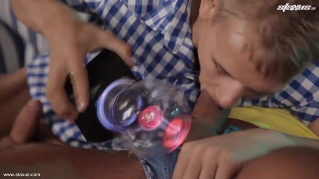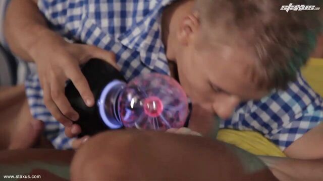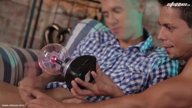 You don’t need a plasma globe to tell you that this fabulous encounter between blond cutie, Chris Hollander, and STAXUS favourite, Ennio Guardi, is electric – but the two fellows decided to bring one along for the occasion just to prove it! Unsurprisingly, the orb sparks up into a veritable frenzy as the two lads press it against their dicks; but ultimately the novelty of the toy can’t ever really hope to compete in the face of some good old-fashioned sucking and fucking.Hence it comes as no surprise when it disappears from sight and the guys get down to the business of giving their horny fans a truly terrific electric display all of their own. Needless to say, it’ll come as no surprise that it’s Guardi – a few years older than Hollander, and boasting a body that’s clearly testimony to having spent many hours in the gym – who proves the dominant party in this coupling; whilst Hollander acts out the role of perfect bitch, slurping on his mate’s cock, rimming his ass and (ultimately) providing Guardi a warm, hungry ass-hole to fuck!And let’s be honest here and confirm that the dark-haired top makes the very, very most of the opportunity, banging away at Hollander’s pucker with the kind of energy that had previously been displayed within the confines of the plasma globe. It’s little surprise, therefore, that it’s not long before both these beauties are knocking out generous wads for your entertainment – by which time, no doubt, your own knob will be responding with a similar spiteful fury!