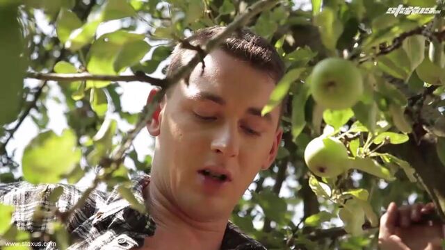 It’s not your usual location for a sex date – half way up an apple tree! – but that’s exactly where Orlando White and Rick Nielson are making out during the opening minutes of this horny little encounter. What the Health & Safety Executive would have to say about this apparent recklessness is anyone’s guess, of course; but the good news is that both these sexy fuckers make it back down to the ground without any damage to life or limb, and that they’re soon able to continue their set-piece against the relative safety of a garden bench.Not that the new location appears to give White any impetus to remove the skimpy blue denim shorts that he’s wearing – the fellow even sits rimming Nielson’s ass in them! – but it’s not long before both guys are in the mood for something a little more intense than simply sucking dick. Cue White finally breaking free of his clothes and prepare for the fantastic sight of his thick, raw shaft breaking through his Nielson’s hungry little ring. It’s a move that signals the start of an energetic coupling that’ll have you unzipping and wanking in no time, as Nielson takes his mate’s ramrod with the kind of gusto you’ve no doubt come to expect from our boys.All culminating in White blasting the contents of his balls are over the fellow’s ass-hole; before sticking his dick back inside for good measure, and then finally allowing Nielson to empty his own wad over his face in return!