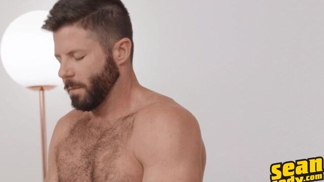 We've been asking furry, bearded hunk Holden to come on Sean Cody for a while now, and he's finally said yes! This "bottom that likes to top" is no stranger to adrenaline as a skydiver, scuba diver, and rock climber, but he isn't nervous at all about getting naked for you on our site; he's just excited to get himself out there and let you enjoy him. Holden quickly shucks off his casual tank top and shorts to let you feast your eyes on his muscular, hairy chest and thick cock, stroking himself and fucking his hands until he shoots a thick load on his pulsing abs.