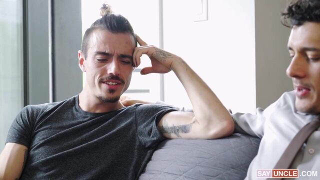 - Description: Rocky is talking with his stepson Sean when he tells him that he’s preparing for a job interview, so Rocky asks Sean to show him what he’s going to wear. While Rocky helps Sean put on a tie, Sean can feel his stepdad’s boner behind him and now he can’t help himself but jump on stepdaddy’s cock!