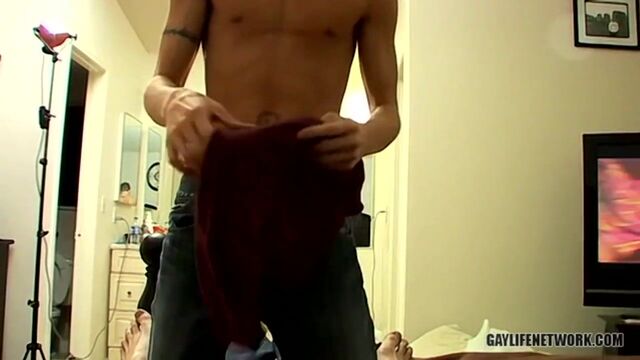 Who wouldn't want to suck on the gorgeous jock cock of hunky Marcus' Lucky Ryan is the boy shooting some video with the studly dude, but soon it's all hands on deck (or all mouths on cock) for the real fun. The boys swap their hard dicks in an excellent session of sucking and frott, with some tasty rimming of that tight jock ass too, before both get a cum wad to the face! You would probably give your right ball to be between these guys.