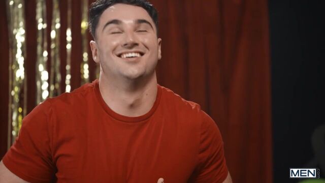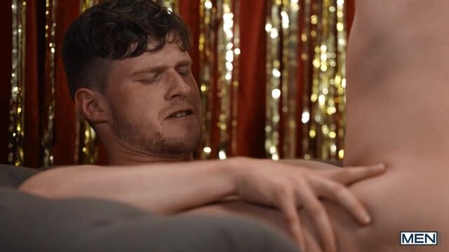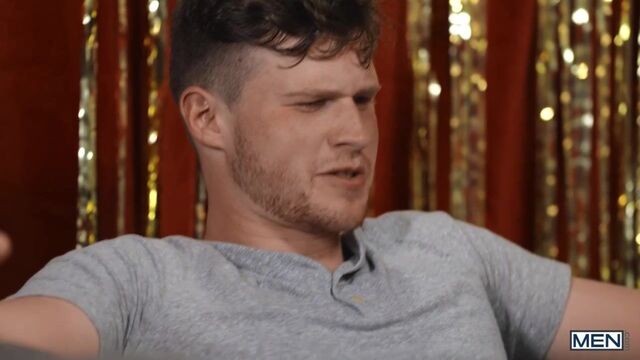 Finn Harding is super excited when his old friend Michael Boston gets him a lapdance with stacked blonde Codi Vore for his birthday. His buddies watch and cheer as Codi shakes her big tits in his face, then laugh as she blindfolds the birthday boy and puts a bra on Michael's ass, telling Finn to grab a big handful. But Michael and Finn enjoy the booty motorboating more than they thought! Michael sucks his buddy's cock, then Finn licks the eager bottom's hole. Finn forgets all about the stripper as he pounds Michael in doggystyle, then the bottom sits on his big dick. Michael cums as Finn drills him in missionary, then climbs back on top before taking a birthday facial!