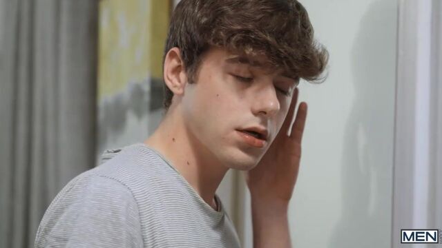 Joey Mills just keeps trying to seduce his roommates Finn Harding and Troye Dean into a threesome, no matter how many times the couple tell him they're monogamous! After the guys kick him out of their room, Joey sneaks back and sucks Finn's cock, right behind his bf's back. After Troye finds Finn's briefs full of cum lying in bed, Joey hides under the blanket ass out, until Troye fucks him thinking it's his man! When Finn returns, the couple finally give their roommate what he's wanted, letting him suck their cocks before they spit-roast him. Finn fucks Troye doggystyle as Troye fucks Joey, then the two tops take turns pounding Joey's hole before Troye cums in the mischievous blond's mouth. Joey watches Finn fuck Troye, jacking off, till he shoots his load in his hand and Finn cums all over his boyfriend.