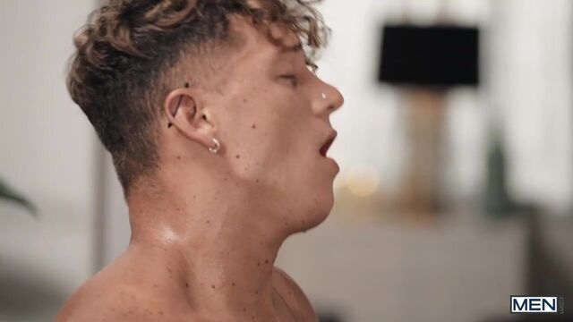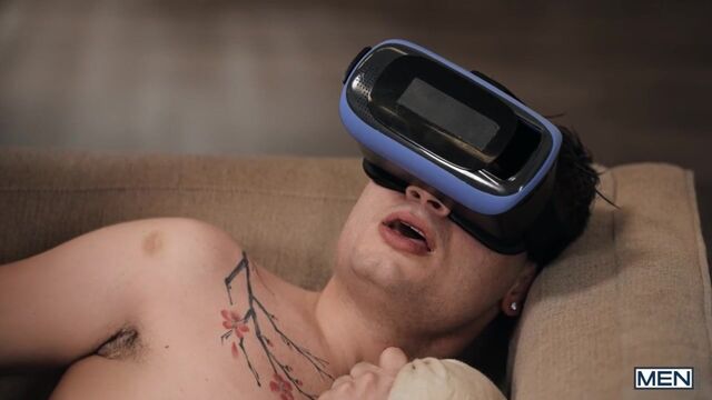 Ryan Bailey finally has the time to relax and destress with his VR sex game and his riding fuck machine. Ryan is so engrossed in the good vibrations, he doesn't hear masked burglar Felix Fox breaking in... but Felix hears him! The intruder tries to be quiet as he spies on Ryan and strokes his cock, but can't help making a noise. While Ryan goes to investigate, Felix strips off and takes the place of the machine, and Ryan eagerly lowers himself onto the blond hunk's cock. When he realizes he's riding the real thing, he gets back on the fuck machine so he can suck Felix's dick, then the top rims him before blowing him. The muscular burglar shows Ryan what a real man can do as he pounds his hole in missionary, then straps on his VR goggles as he fucks him doggystyle. Ryan rides the top and takes Felix's load on his goggles before jacking off till he cums.