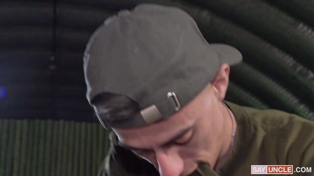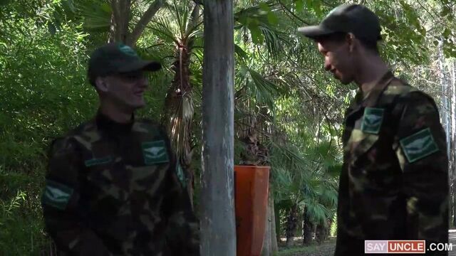 Frank is given a task by his superior, Cecil, but is caught sucking Sly’s dick in the forest. To compensate for his insolence, Frank must now pleasure Cecil and Sly to show his dedication to the military.