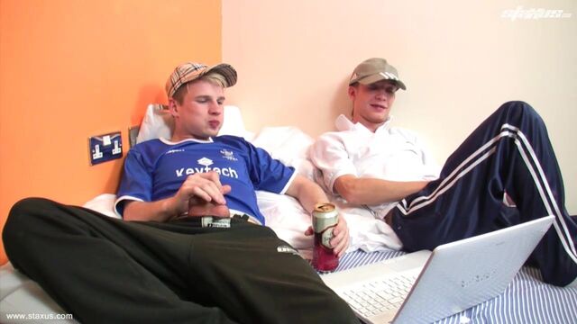 Honestly now, is there anything better than watching a couple of half-brained, baseball-capped chavs slouching around whilst they drink lager and piss around on the computer? Well, as Kamyk Walker and Jonathan Tago ably demonstrate here, perhaps there is – but only if they get their cocks out! Fortunately for us, both these lads appear more than happy, willing and able to do exactly that; and before you know it the two boys have their clenched fists wrapped around their respective dicks.Not that either of these guys are gonna be content with a simple wank, of course – least of all Walker, who (as we all know very well by now) is never backward at coming forwards where dick’s concerned. As it turns out, however, it’s Tago who makes the first move, slurping on his mate’s shaft with the kind of eagerness we like to see from our lads. But when it comes to cock-worship, of course, there’s very few who can compete with Walker; and having savoured Tago’s efforts it’s up to him to show us how it’s really done, deep-throating his pal’s handsomely-sized ramrod and then promptly mounting the meaty, hooded dong and giving it a real hard ride from every direction.The result is a breathless, laddish fuck that pretty much sums up chaps of this age and class; and by the time Tago has summed up proceedings by spurting on Walker’s face and then finishing off his can, your own satisfied wad is assured!