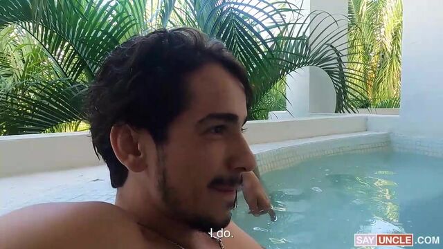 Lucca and Ragel recount all their fun and naughty encounters during their Cancun paradise getaway. But the stories get the guys even more excited, and the two can’t help but fuck right there in the hot tub.