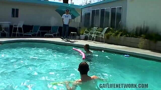 When Casey arrives at the pool and shows off his very suggestive t-shirt, Hoyt and Kenny need to find out if his suggestion about size is true. Of course he's willing to show off that big cock and give them something to play with, and they really love every inch of that long dick! It soon becomes a threesome fuck fest, with Hoyt in the middle of the action. Needless to say all three unload plenty of juice for each other to share, with more than three cum shots!
