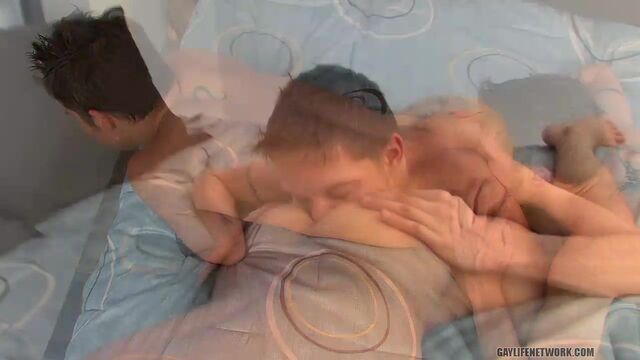 Ryan love to duck a tight twink hole, and his friend Evan definitely has an ass in need of a good dick inside it. The boys share some great sucking to get themselves ready for it, then Ryan gives his buddy an excellent ride on his dick, all over the bed, before gushing his hot load all over him! Sucking his friend to a creamy finish, the boys end their session by swapping their semen!