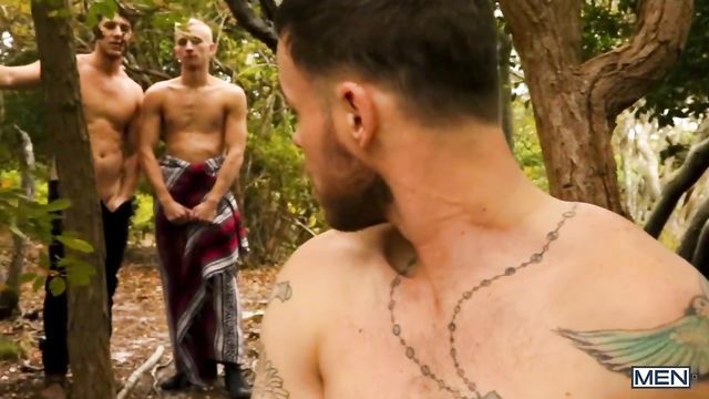 The deserted beach between the water and the woods plays host to a different kind of singles' cruise. Max Wilde hikes in with his blanket and plays with his cock as he watches Paul Canon eating Theo Brady's tight ass. It's not long before Max is joined by muscle-bound, bearded Tyler Wolf to enjoy the show, not to mention put on a show of their own! Tyler tongue-fucks Max's tight hole and Max deepthroats Tyler's cock before getting on all fours for a doggystyle fuck. Tyler lays Max on his back to go super deep in that ass, then sucks Max's dick before fucking the bottom till they both cum!