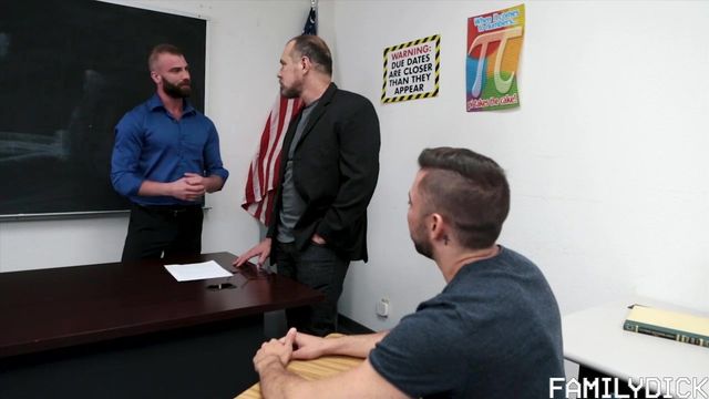 Shane is usually a great student, but recently he’s hit a bit of a rough patch. To remedy the situation, his teacher calls a meeting with the boy’s stepdad. He reveals that he found a journal filled with explicit sexual fantasies Shane has written about his handsome stepdad. He wants to know exactly what the old man is teaching the boy at home, so Shane and his pop give the inquisitive instructor a hands-on lesson. The boy strips and lets the older men caress his tight body as his cock grows hard. They worship each other’s holes in a sexy rim train, before Shane deepthroats his stepdad’s giant dick . Then, Mr. Sargent shoves his cock into his boy’s bubble butt, stretching his hole. The parent teacher conference comes to a creamy conclusion, with the muscle men filling the boy’s hole with their loads!