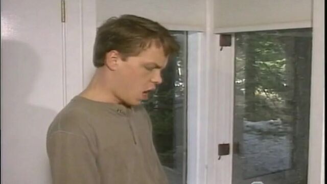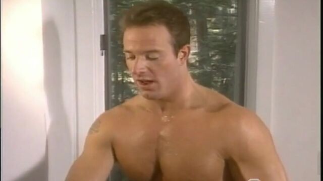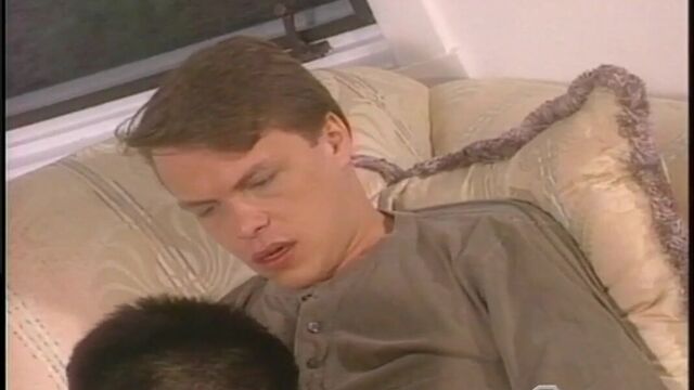 Max Grand, in one of his earliest roles, shows his deep throating skills as he works on the huge slab of Kevin Dean. The two are soon spotted by Trent Reed, who joins in and takes charge. Grand gets filled from both ends, his muffled moans filling the scene.