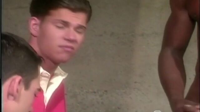 In the frat house basement, Jack Simmons and Tyson Cane are being orally serviced by a blindfolded recruit. Soon, Eric is blindfolded himself and Jack eagerly stuffs his prick down Eric's throat. After some hearty cocksucking, the two studs make Eric and the other masked freshman make out. The blindfolds are removed and the roommates are revealed to each other as fellow pledges. Lance tends to Tyson's muscular body as Eric treats Jack to his own special oral servicing. Then the two roomies stand stretched over the bench as Jack and Tyson bury their cocks deep in their asses. The foursome gyrate and move around each other until they all reach their limit and unleash their loads.