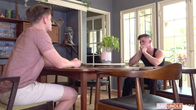 Jay overhears his stepbrother Trevor leaving an upsetting voicemail to his girlfriend and it sounds like they’re having problems. Trevor confesses that his girlfriend is not willing to explore more with him in the bedroom, so Jay offers to help him out with that. Trevor is a little apprehensive at first but when Jay pulls down his pants to reveal a huge boner he decides to go with the flow and fuck his stepbrother!